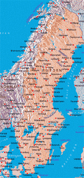 Sweden is located in Northern Europe, bordering the Baltic Sea, Gulf of Bothnia, Kattegat, and Skagerrak, between Finland and Norway. The terrain of Sweden is mostly flat or gently rolling lowlands; mountains in west.